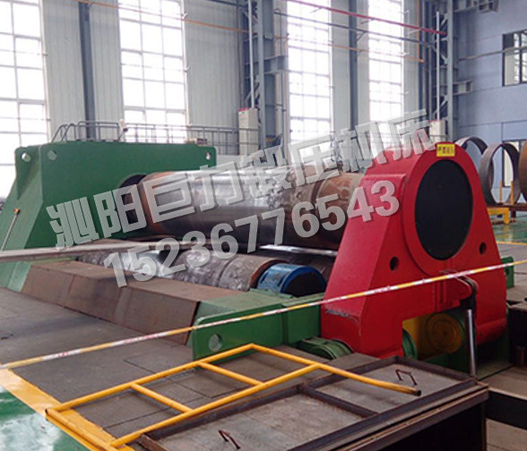 該四輥卷板機與對稱三輥卷板機比較,它可以不借助其它設備模具,直接予彎板材端部,而且剩余直邊較??;它可以不使板材調頭,而卷成工件。